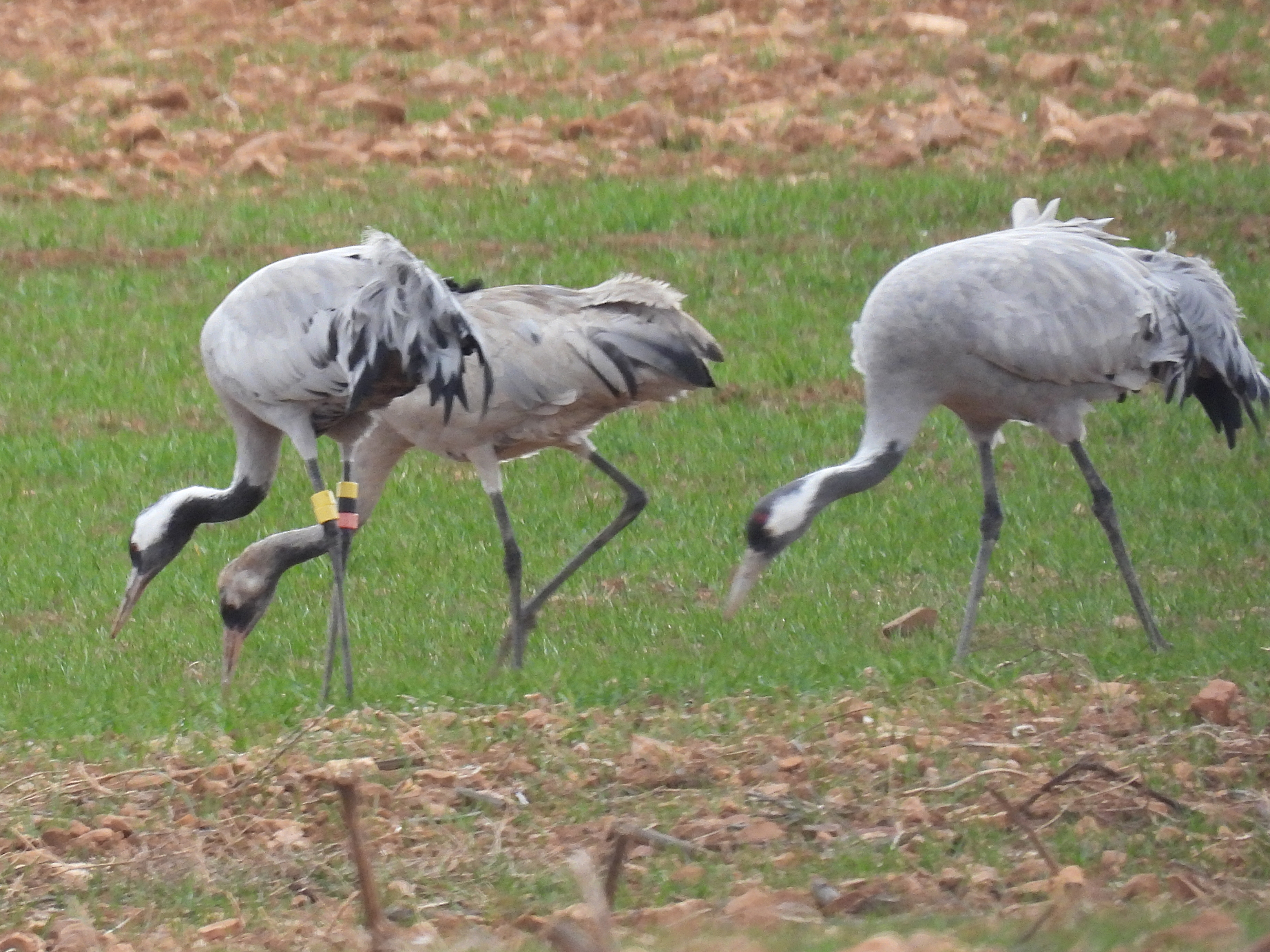 Grulla marcada con anillas de colores observada el 25.I.2025 en Gallocanta |